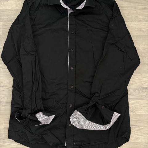 Skjorten har dobbel mansjett (for mansjettknapper), noe som gir et mer formelt og gjennomført uttrykk – perfekt til dress eller høytidelige anledninger.