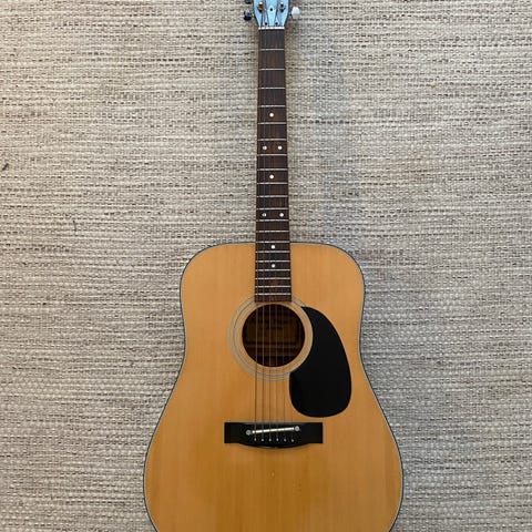 Hei, denne har tjent meg trofast i mange år. Kjøpt hos Kristen Bok og Musikk i 1992 (VIVO). Brukte den lenge som bare 6-strengs i irsk/keltisk musikk, særlig under den "grønne bølgen" med mange irske puber på Østlandet. Så har den stått ganske stille de siste 10 åra. Ganske nye Elixir strenger satt på, gauge 10-47. Lav action, lettspilt etter å ha vært hos gitarmaker og fått rettet hals og intonert gitaren. Ut over det: Heltre ceder lokk, og mahogni sider og bunn. Mørkt, nesten som ibenholt rosewood fingerbrett. Mahogny hals. Alle som har hørt denne gitaren rent akustisk, sier at den låter VELDIG STORT, og jeg er enig! Preamp/mikken med 4 band equalizer sørger fortsatt for en flott autentisk, akustisk lyd ut.