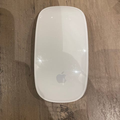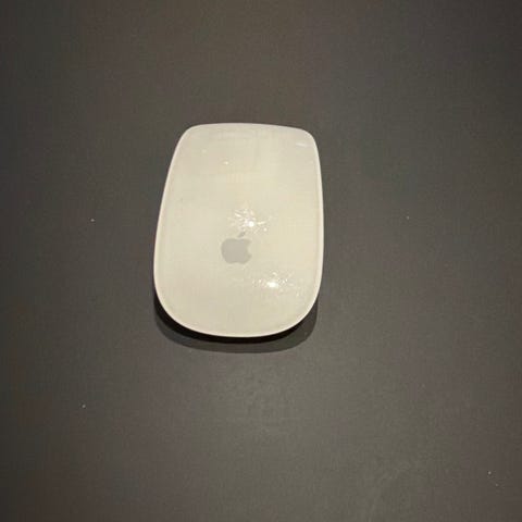 Apple Magic Mouse datamus i hvit farge. Trådløs mus med glatt overside og berøringsflate for rulling og enkle bevegelser. Egnet som tilleggsutstyr til stasjonær eller bærbar datamaskin fra Apple eller andre kompatible enheter med Bluetooth-støtte.