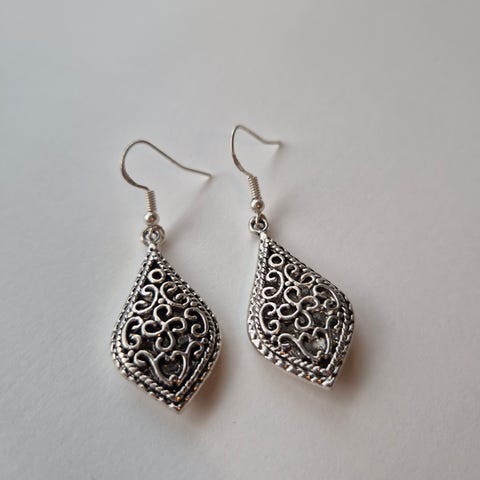 Løv-ørdobber med kroker i ekte sølv (925), som ny, kan sendes. Laget av meg :) De er ca. 4,5 cm lange med krok og 1,5 cm brede. 129,- + frakt.