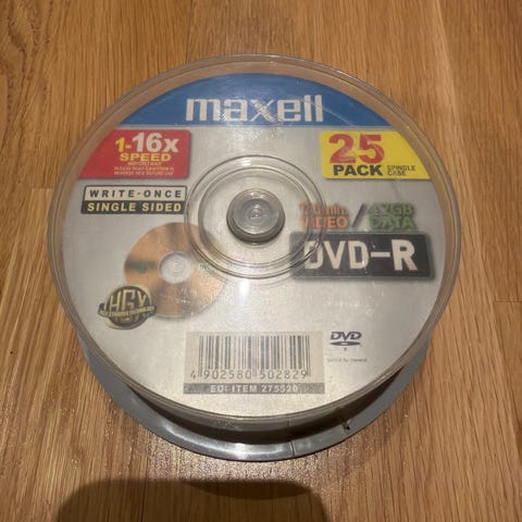 Pakken har vært åpnet, så bare 24 plater igjen på spindelen. Selges kr 200