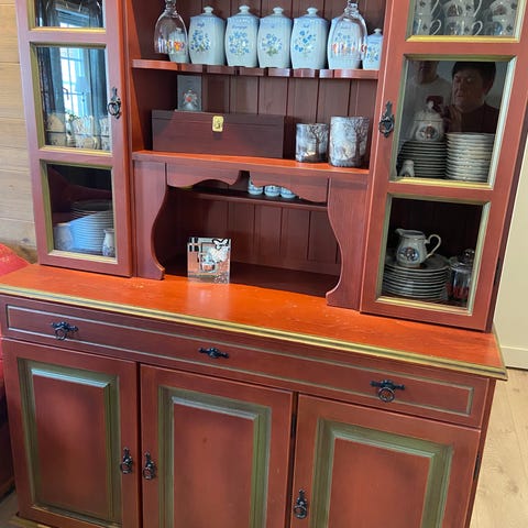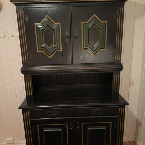 Skap og skuffer i furu. Malt en gang. Plass til mye.