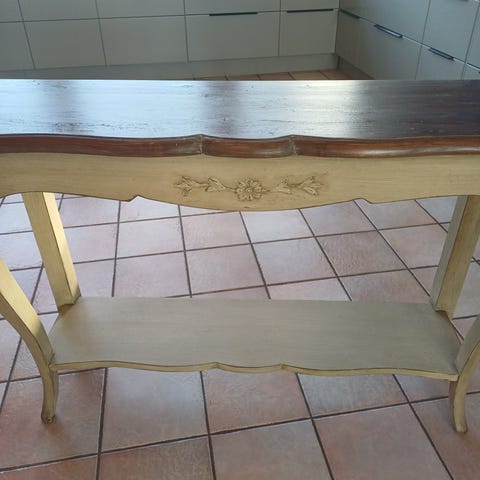Fint konsoll i metall med rustikk bronseplate.Stødig og solid.
