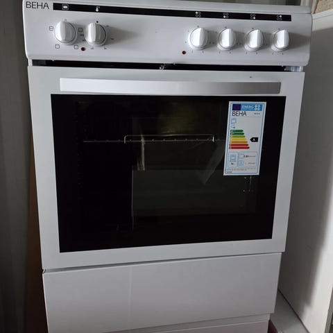 Beko keramisk komfyr i hvit utførelse. Komfyren har fire kokeplater på toppen og stekeovn med rist og stekebrettnivåer. Fronten har dreieknapper for betjening av både kokeplater og stekeovn. Passer til vanlig frittstående plassering på kjøkken. Fire år gammel i god stand og nøyaktig rengjort.