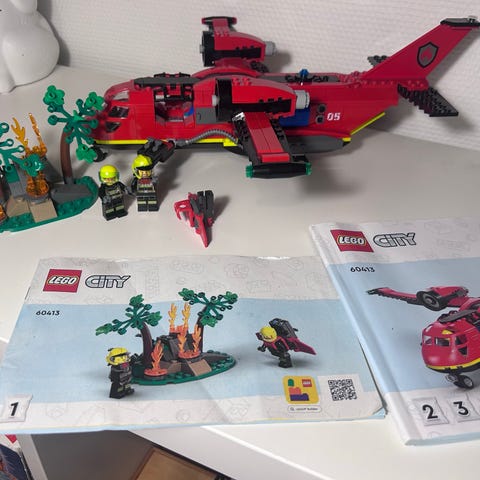 LEGO City fly med brannslukking. Sett med rødt brannfly og tilbehør til utrykning og slukking av brann i skogsområde. Inneholder fly med bevegelige deler, vannelementer som kan «slippes» fra flyet, samt minifigurer og utstyr til redningsarbeid. Egnet for bygging og lek med rednings- og brannscenarier i LEGO City-universet.