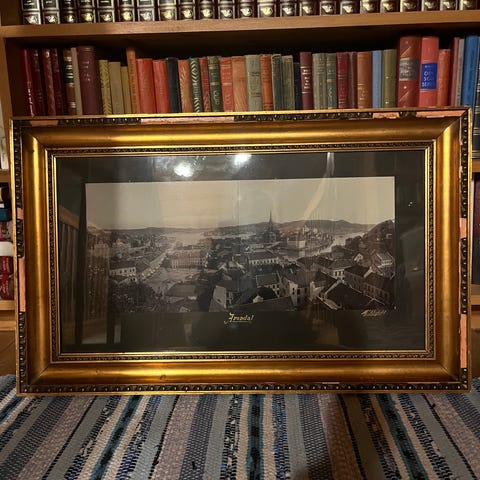 På baksiden står det “Kunstforretning Gulbrandsen, Skien”, noe som tyder på lokal tilknytning til Telemark-området. Kan også være relevant for Larvik / Vestfold sjøfartshistorie.