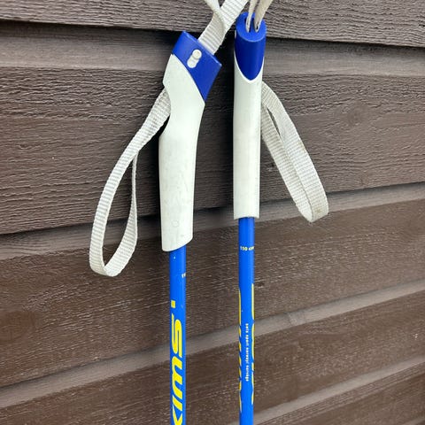 KV+ Tornado langrennstaver, blå/rød fra Foss sport. Nypris 999,-. Håndstroppet str XS. Pent brukt, noen bruksmerker, se bilder.