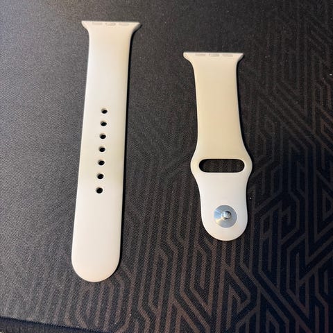 Apple reim til Apple Watch i silikon i mørk blå farge. Består av to deler med justerbare hull og metallknapp for lukking. Passer til kompatible Apple Watch-modeller som bruker denne typen festemekanisme.