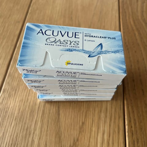 Acuvue Oasys HydraLuxe endags kontaktlinser for astigmatisme unisex. Linsene er toriske og beregnet for korrigering av skjeve hornhinner. Engangslinser som brukes én dag og kastes etter bruk. Passer for både kvinner og menn. -0,75. Selges pga endret syn. 90 stk pr pakke. Selges for kr 300,- pr pakke. Linsene varer til januar 2029.