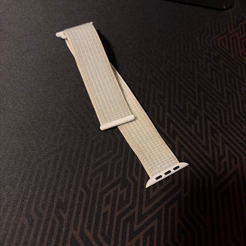 Apple rem til Apple Watch i nylon med borrelåslukking. Remmen har lys utside og oransje innside med blå detalj ved festet. Justerbar lengde som passer ulike håndledd. Kompatibel med Apple Watch (størrelse avhenger av festetypen på klokken). Egnet som erstatningsrem eller ekstra rem til daglig bruk.