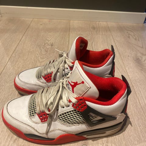 Jordan sneakers joggesko i størrelse 43. Modellen har overdel i grått materiale med svarte detaljer og rød innside. Yttersåle i gummi med mønster for grep og synlig demping i hælen. Klassisk snøring og polstret pløse og krage for komfort. Passer til hverdagsbruk og fritid.