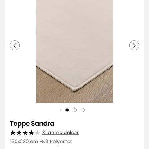 Selger et 200x290cm teppe da vi har kjøpt oss et nytt. Teppet har en flekk som jeg regner med kan vaskes bort, men har ikke prøvd selv. Kjøpt på Rusta i sommer, så relativt nytt teppe. Må hentes