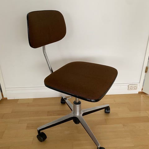 Turn your home office into something you want to show off. This stunning swivel chair pairs a curved walnut backrest with a sumptuous velvet seat and brass legs, striking the perfect balance between vintage charm and contemporary flair.