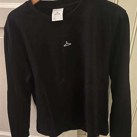Selger en helt ubrukt og kjempefin strikkegenser fra Holzweiler sin populære "Hanger"-kolleksjon. Genseren er sort med et unikt, teksturert graffiti-design på brystet med teksten "No More Fun" i pastellfarger.
