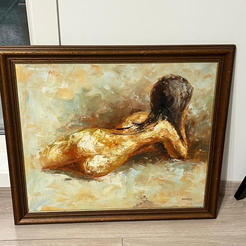 Maleri med figurativ aktmotiv malt på lerret.
