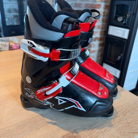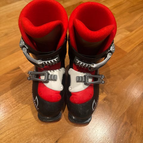 Nordica Firearrow T2 Team alpinstøvler til barn i størrelse 200-215mm (255 mm). Tiksvarer ca str 32-33 Støvlene er i fargene svart og rød med justerbare spenner foran og over vristen for å gi god tilpasning rundt foten. Myk og polstret innerstøvel gir komfort og støtte. Passer til bruk i alpinbakke med standard alpinski-bindinger. Egnet som barne- eller juniorstøvler avhengig av fotstørrelse.