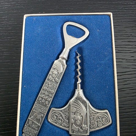 Flaskeåpner fra Holsen Gullsmed, dekorert håndtak "Norge-motiv"