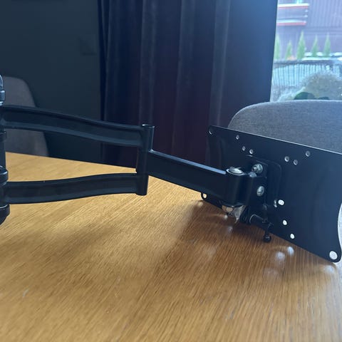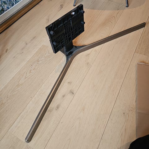 Pent brukt Samsung TV fot. Avstand mellom hull er 10 cm oppe og 20 cm nede. Bredde føtter er 63 cm foran og 57 cm bak