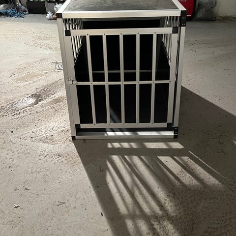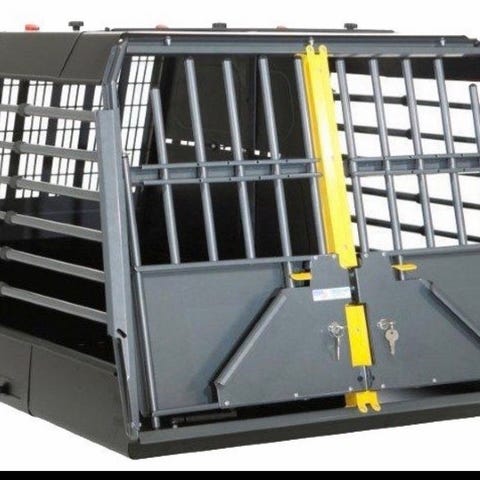 vidaXL hundebur for bil i aluminium med svarte sideplater. Mål: 54 x 69 x 50 cm (B x D x H) Passer til små-mellomstore hunder, med vekt opp til 10-15 kg.