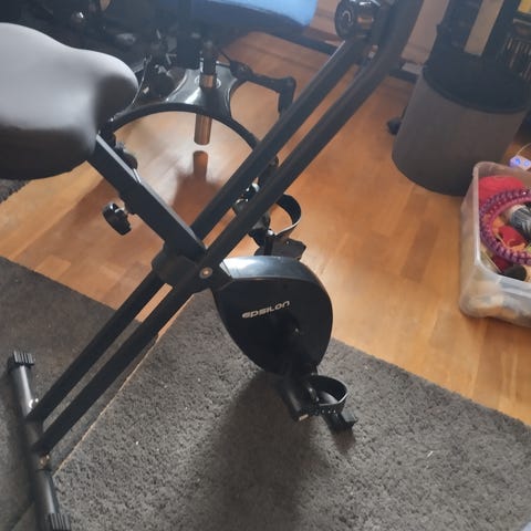 Dunlop trimsykkel med treningscomputer i sølvfarge. Sykkelen har justerbart sete og styre, samt pedaler med fotstropper for stabil bruk. Innebygd treningscomputer viser blant annet tid, hastighet, distanse. Egnet til innendørs kondisjonstrening og lett mosjon hjemme.