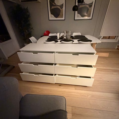Selger pent brukt kommode fra serien NORDLI da den bare blir stående. Ett lite hakk i den ene skuffen, men ikke særlig synlig. Ellers i helt fin stand! Må hentes, og helst demonteres!