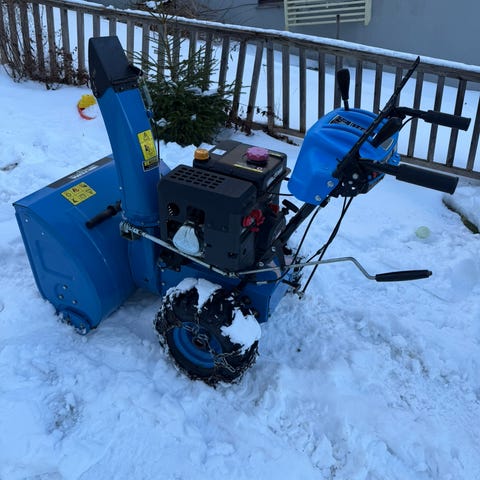 Biltema MultiX 36V snøfreser i blå farge. Batteridrevet modell tilpasset MultiX 36 V-systemet. Egnet for fjerning av snø fra mindre flater som terrasse, innkjørsel og gangvei. Leveres med justerbart håndtak og integrert utkast i front. Passer for brukere som allerede har kompatible 36 V MultiX-batterier og lader fra Biltema.