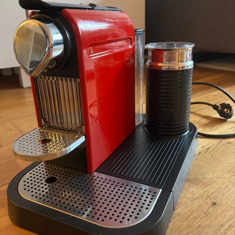 Nespresso kapselmaskin med melkeskummer rød