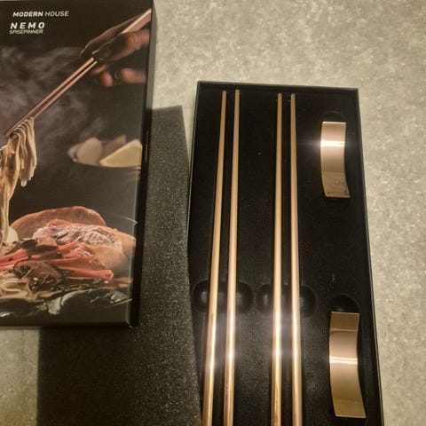 Fem spisepinner i merket Tokyo Design Studio selges. To er ubrukte - se bildet.