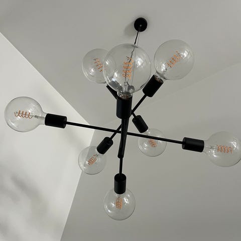 Molecular lampen fra House Doctor blir en iøynefallende detalj over spisebordet eller i stuen. Taklampen er laget av sortlakkert jern og har flotte messingdetaljer. Molecular taklampen har justerbare armer som gjør det mulig å gi lampen det utseende som du selv ønsker, og dessuten rette lyset i den retning du selv ønsker. Dette er en utrloig populær lampe, som egner seg godt i rom med høyt i taket. Lyspærer er ikke inkludert, og ekstra store lyspærer anbefales for den ultimate looken.