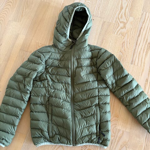 Svart dunjakke med hette, nesten ikke brukt. Str 164.