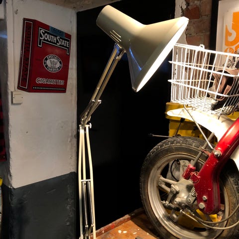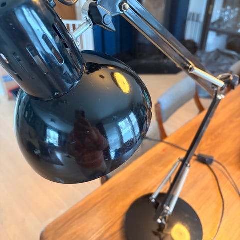 Klassisk Luxo L-1P arkitektlampe/arbeidslampe i retro brun. I god stand, bortsett fra noen riper, se bilder. Mangler dessverre bortfeste, selges derfor litt billigere.