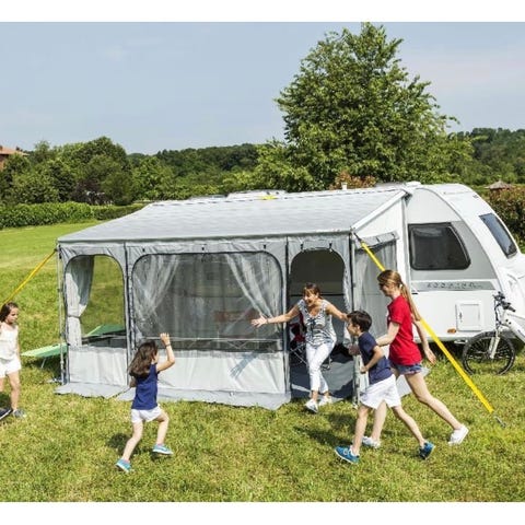 Fiamma caravanstore pose markise til campingvogn 410 med vegger med glidlås