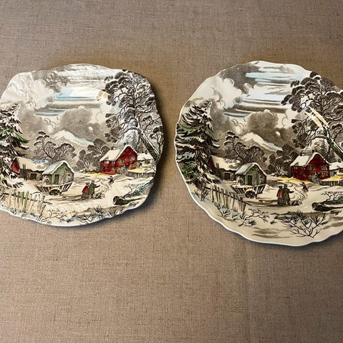 Johnson Brothers Friendly Village servise i porselen. Dekoren viser landsbymotiver i flere farger med grønn bord. Bildene viser ulike deler av serviset, blant annet tallerkener i forskjellige størrelser, serveringsfat, boller og sausnebb. Serviset egner seg til servering av varme og kalde retter ved middager og selskaper, og kan brukes både til hverdags og ved mer høytidelige anledninger. ikke vært i oppvaskmaskin. Sendes ikke. kan avtale levering mellom Tønsberg og Elverum.
