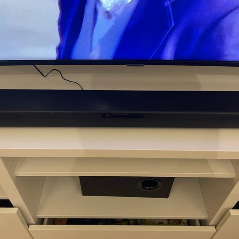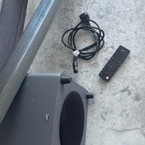 LG soundbar med tilhørende subwoofer i svart. Soundbaren leveres med fjernkontroll og strømkabler, slik det fremgår av bildene. Systemet er egnet for bruk sammen med TV eller andre lydkilder via tilgjengelige tilkoblinger på enheten. Passer til stue, soverom eller andre rom der det er behov for forbedret TV‑ og musikklyd. Spesifikke tekniske data som effekt, tilkoblingstyper og modellbetegnelse er ikke oppgitt og bør eventuelt sjekkes mot produktmerking på enheten.