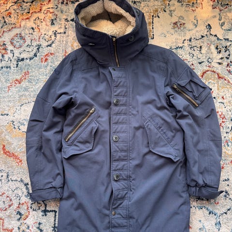 Pent brukt parkas fra Woolrich str. M. Er i svært god stand, men er en knapp som er knekt, men som fortsatt sitter på (bilde 2).