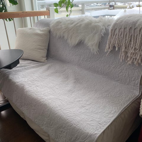 Grunnarp sovesofa fra IKEA. Perfekt både som sofa og til å sove på som en dobbeltseng.