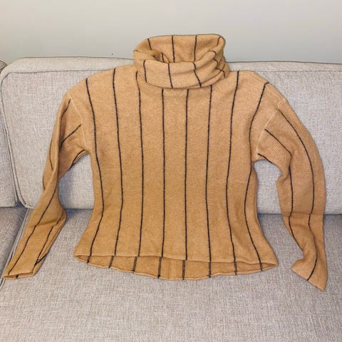 Beige hettegenser topp for dame i størrelse L. Toppen har lang arm og hette, samt dekorative glidelåser med ringdetalj nederst på sidene. Mykt stoff som gir et behagelig plagg til hverdagsbruk eller avslappede anledninger.