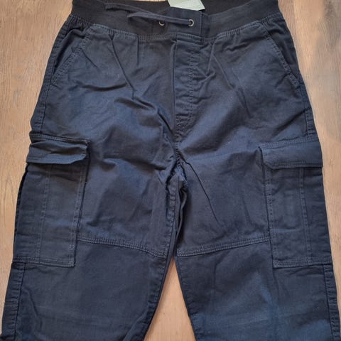 Lette og behagelige cargo-bukser i bomull fra H&M, størrelse 164 (ca. 13-14 år). Buksene har strikk og snøring i livet, praktiske sidelommer på lårene og strikk nederst i bena. En kjempefin bukse til hverdagsbruk om våren og sommeren.