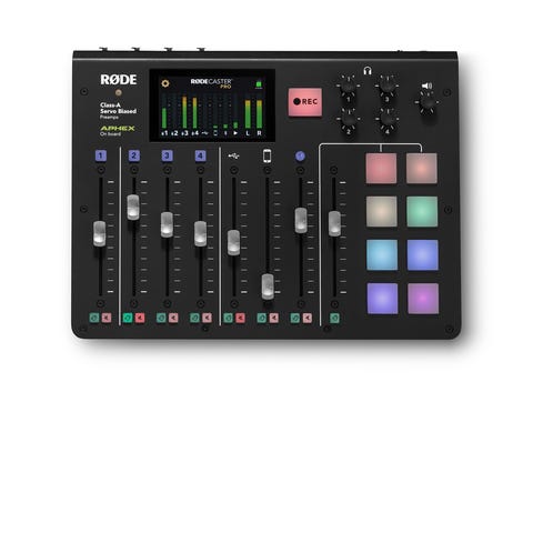 DJ-kontroller med hodetelefoner og høyttalere svart