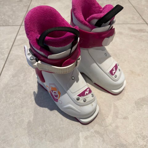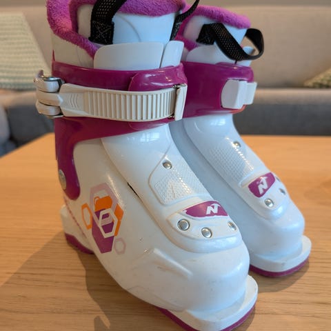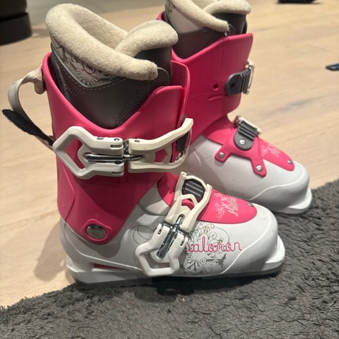 Rosa og hvit alpinstøvel str 215 mm tilsalgs.