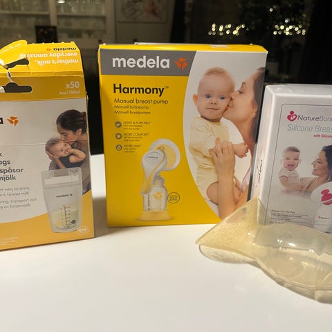 1 åpnet og 1 uåpnet pakke medela ammeinnlegg, og en åpnet pakke libero 1 bleier gis bort