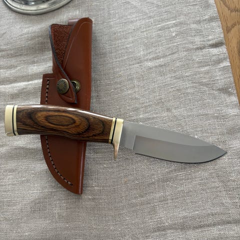 Bladlengden er 10 cm 420 stål ekte lærslire