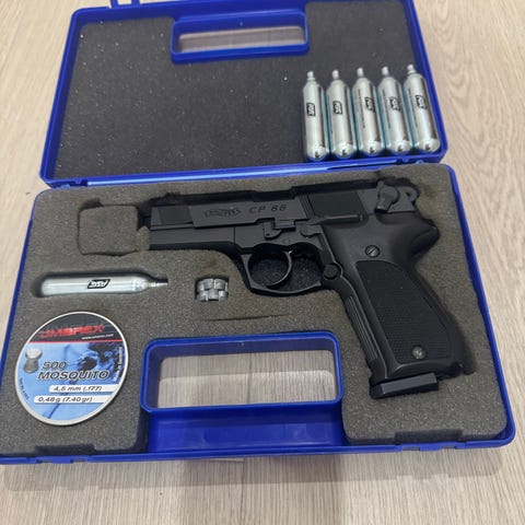 Drives av 12g CO₂: Gir opptil 60 skudd per patron