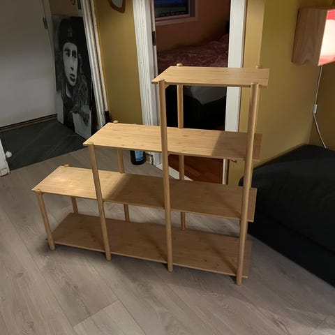 Fin hylle som kan stå eller henges opp i hjørnet av et rom. Ingen riper eller skader