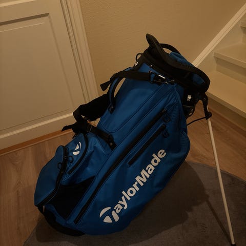 TaylorMade golf reisebag i svart. Modellen har to hjul i bunnen for enkel trilling, bærehåndtak på toppen og flere kompresjonsstropper rundt for å holde innholdet stabilt. Mange lommer. Brukt på en flyreise og i god stand. Ny pris ca kr 2.800,-