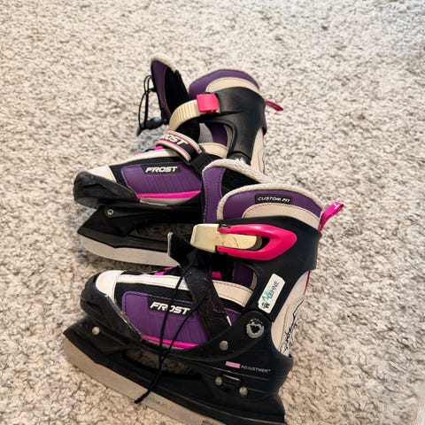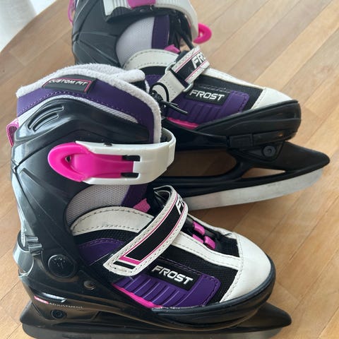 Frost skøyter for barn i lilla, hvit og svart med rosa detaljer.