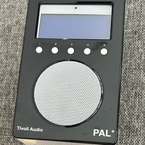 Tivoli Audio PAL+ bærbar radio i hvit utførelse. Modellen har innebygd teleskopantenne og frontmontert høyttaler. Enheten har display på fronten, betjeningsknapper under displayet og stort volumhjul. På baksiden finnes tilkoblinger for AUX-inngang og strøm. Radioen leveres med fjernkontroll som kan festes på baksiden i egen holder. Egnet som kompakt bordradio eller portabel radio til bruk innendørs eller utendørs der det er tilgang til strøm eller oppladet batteri.