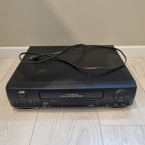 VHS, VCR, videospiller, JVC, Hi-Fi Stereo, SQPB, S-VHS, retro, vintage, analog, video capture, digitalisering, NICAM, B.E.S.T, HR-J581, HR-J581EU, tape player, kassetter, nostalgi