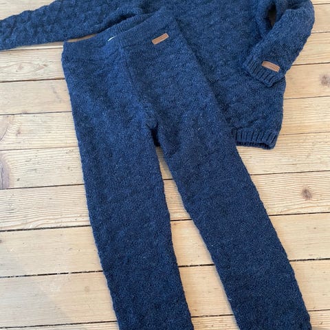 Hjemmestrikket ullsett genser og bukse ca str 2-3 år