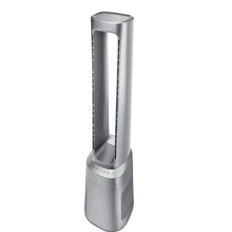 Vifteovnen kombinerer varme- og kjølefunksjon i én enhet. Den har bladløs konstruksjon, noe som gir jevn luftstrøm gjennom den ovale åpningen. Enheten kan oscilleres for å fordele luftstrømmen i rommet, og leveres med fjernkontroll med flere innstillinger for temperatur, luftstrøm og tidsstyring.